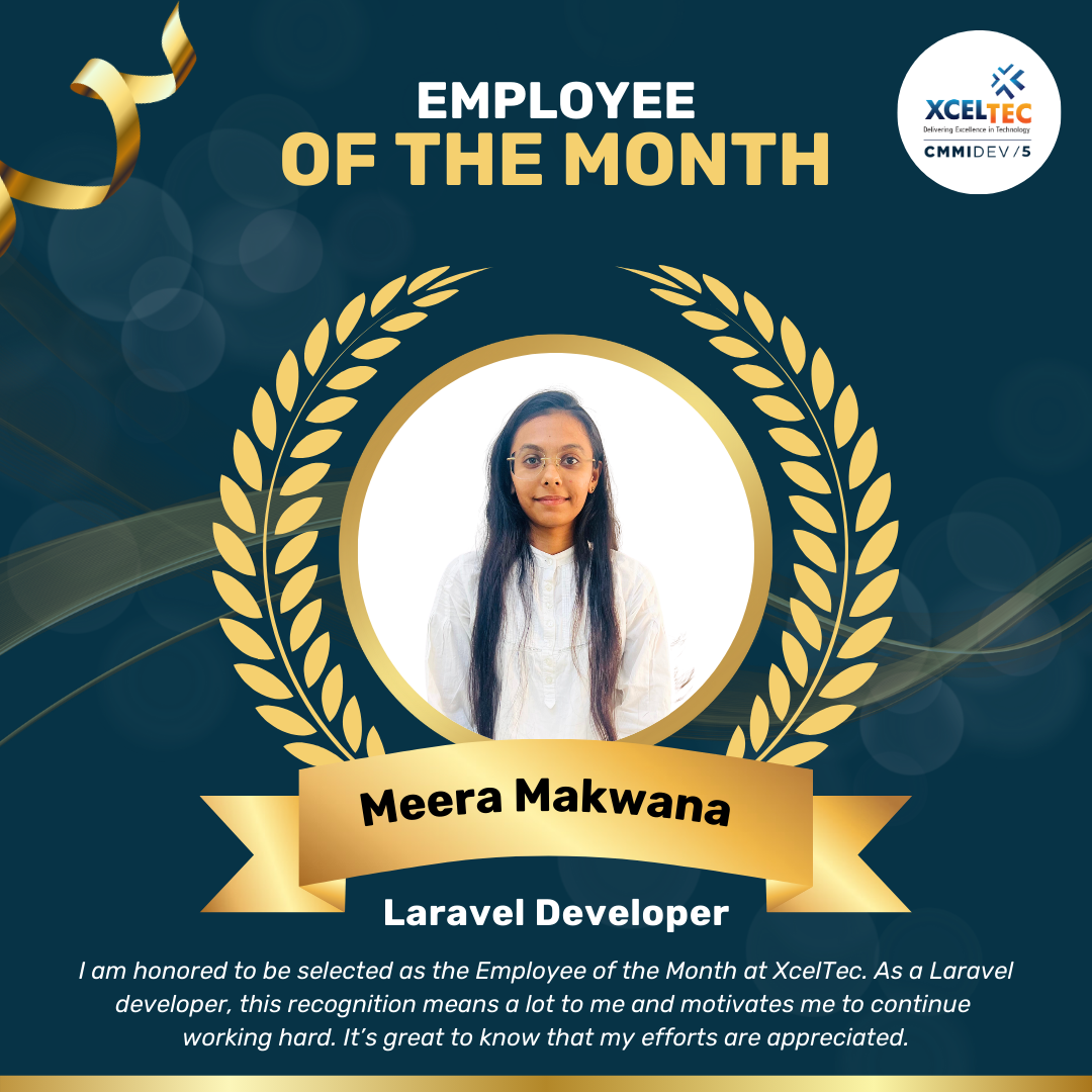 Congratulations to Meera Makwana! We are excited to announce that Meera Makwana has been recognized as XcelTec’s Employee of the Month!