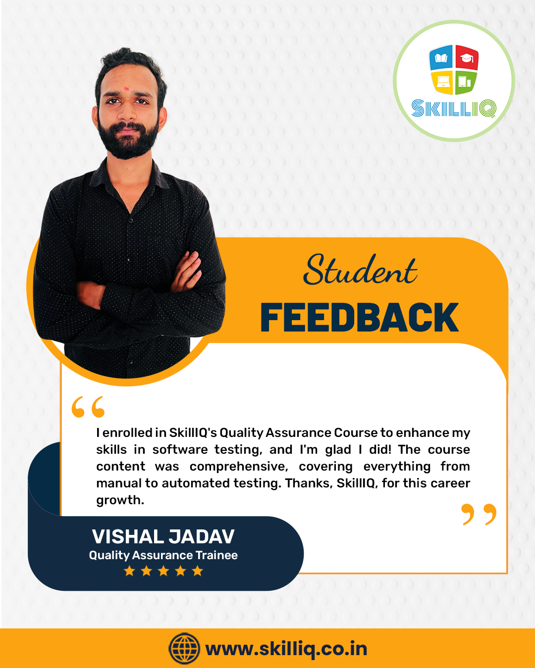 We are proud to celebrate Vishal Jadav, one of our outstanding students, who has completed his QA training at SkillIQ! Dhaval has shared his fantastic experience and feedback in a video review, and we couldn’t be prouder of his accomplishments.
